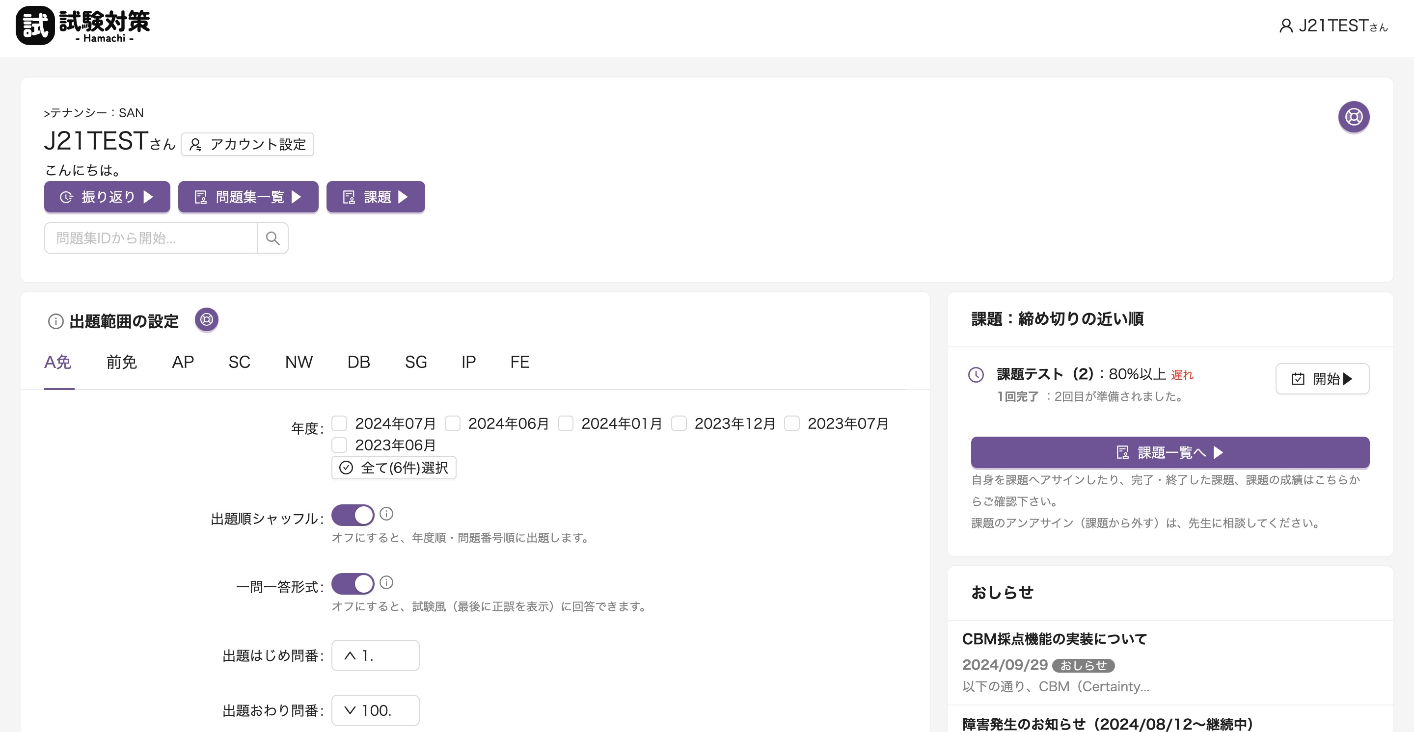 | テナンシー参加用パスワード | 先生から指示される、テナンシーに参加するために検証するパスワード |