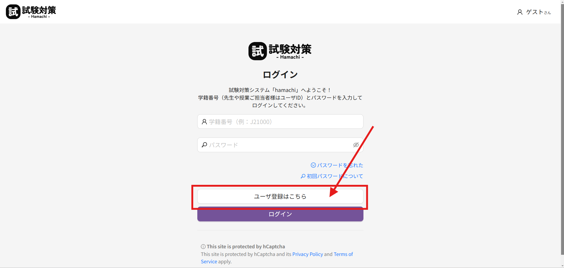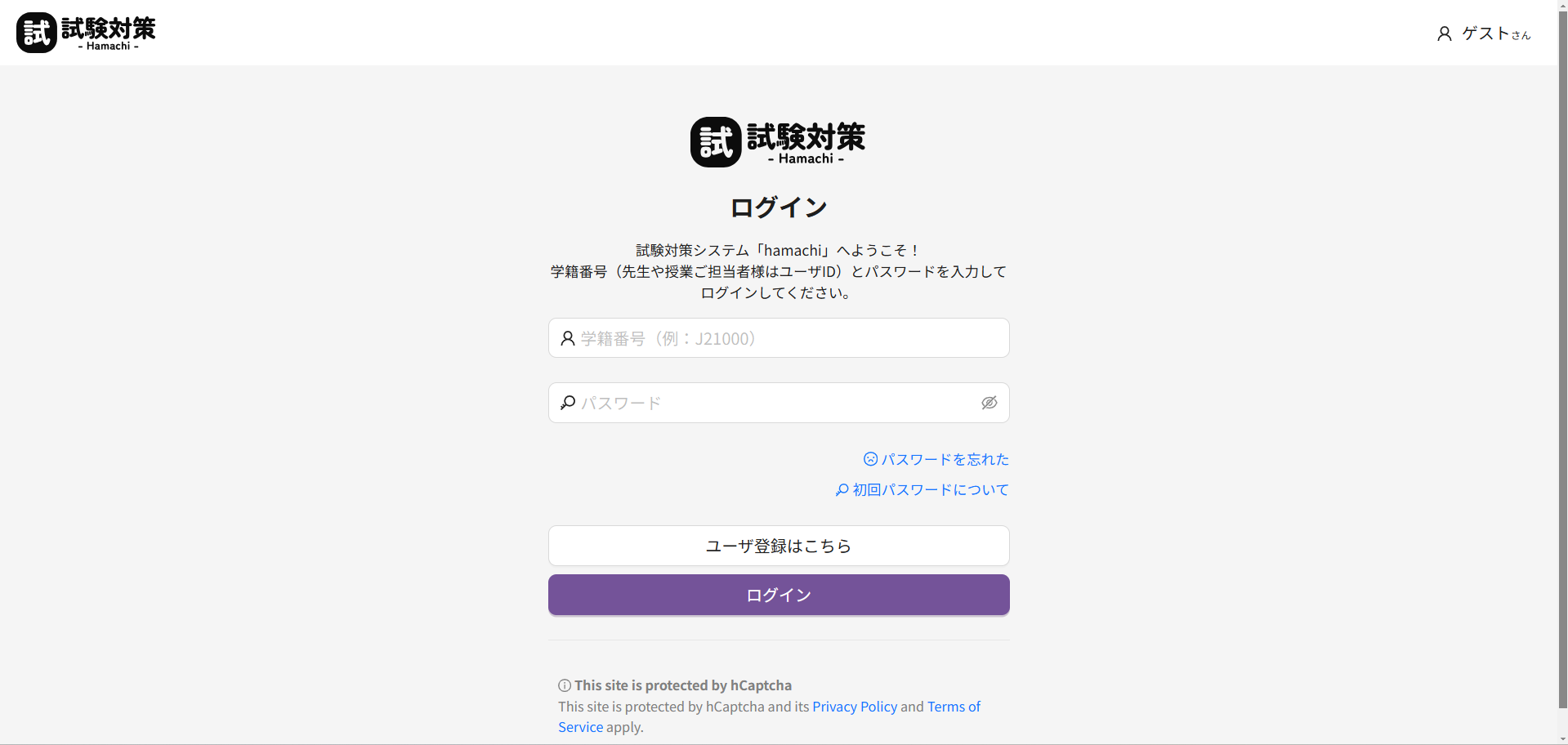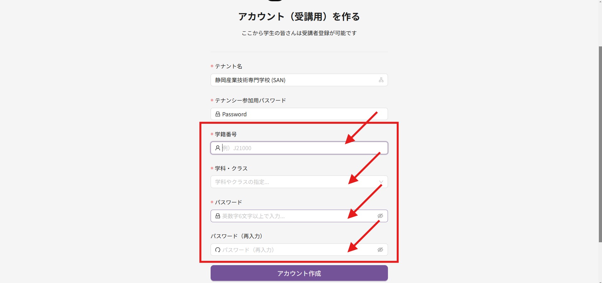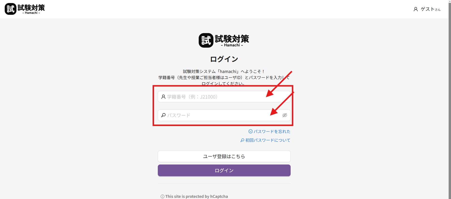学籍番号(ユーザID)先生から指示される学籍番号。大文字小文字を問いません。