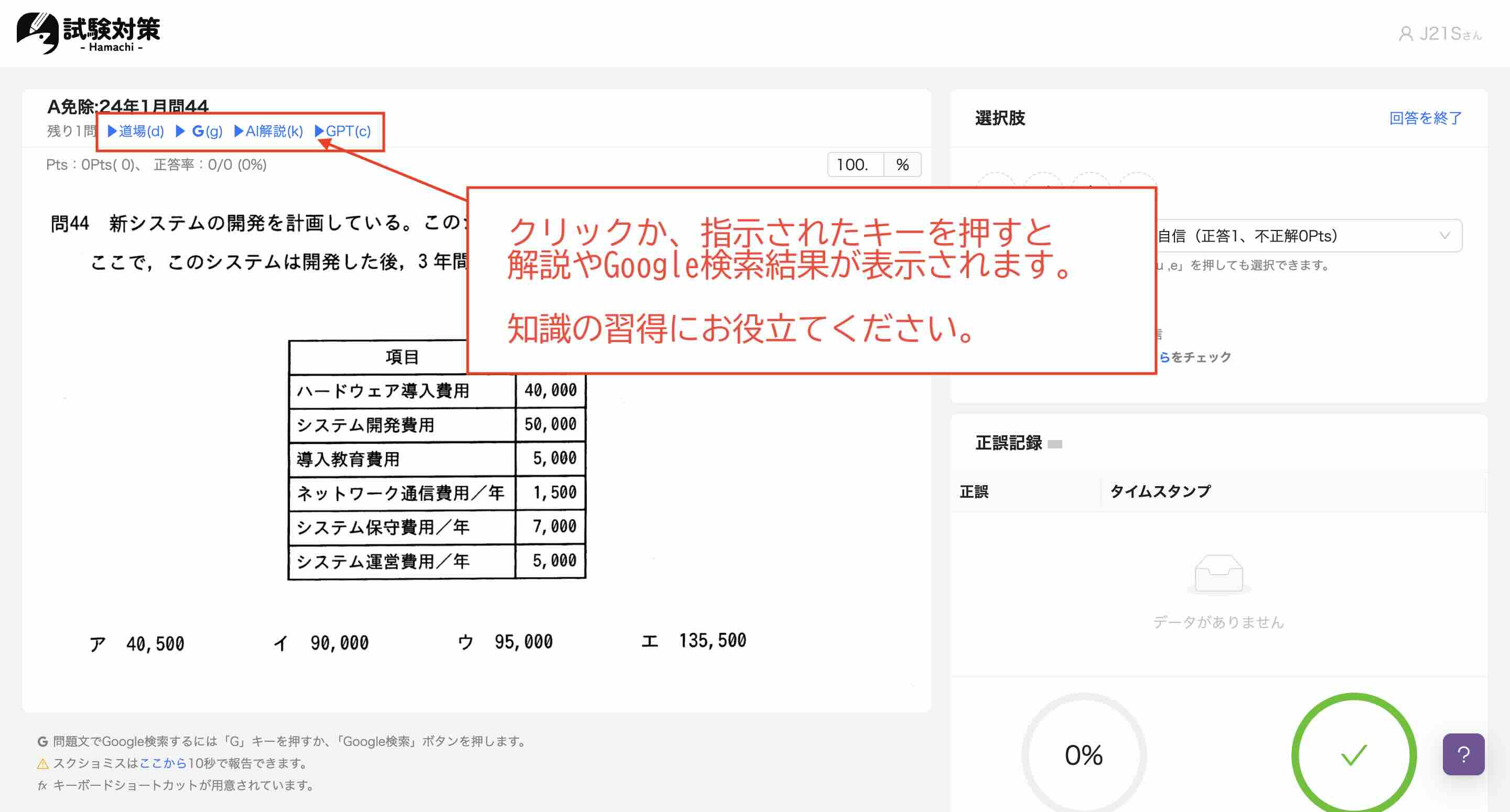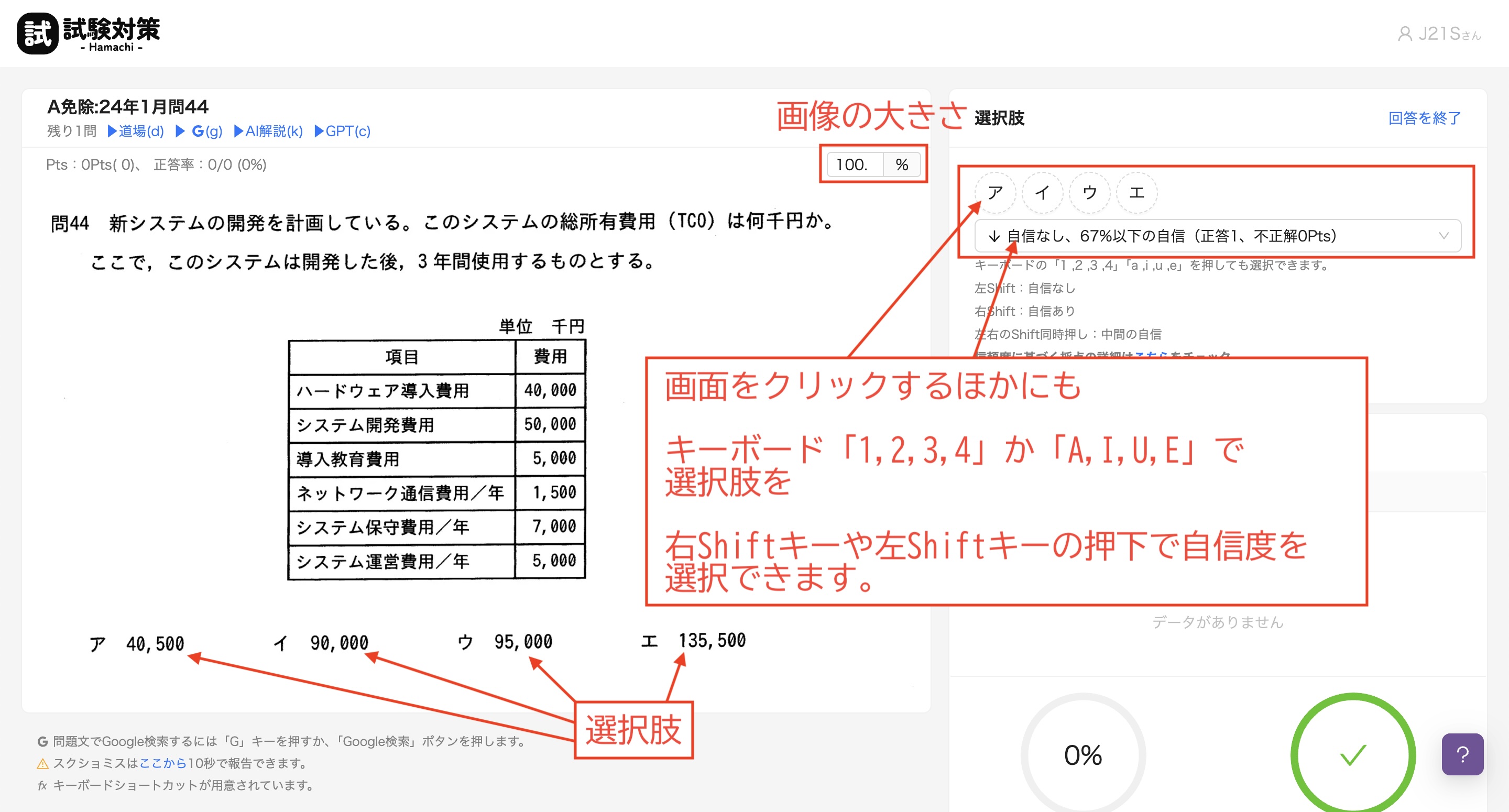 信頼度に応じて得られるスコアが変動します。知識の習得状況の把握にも役立ちますので、是非正確に回答してください。