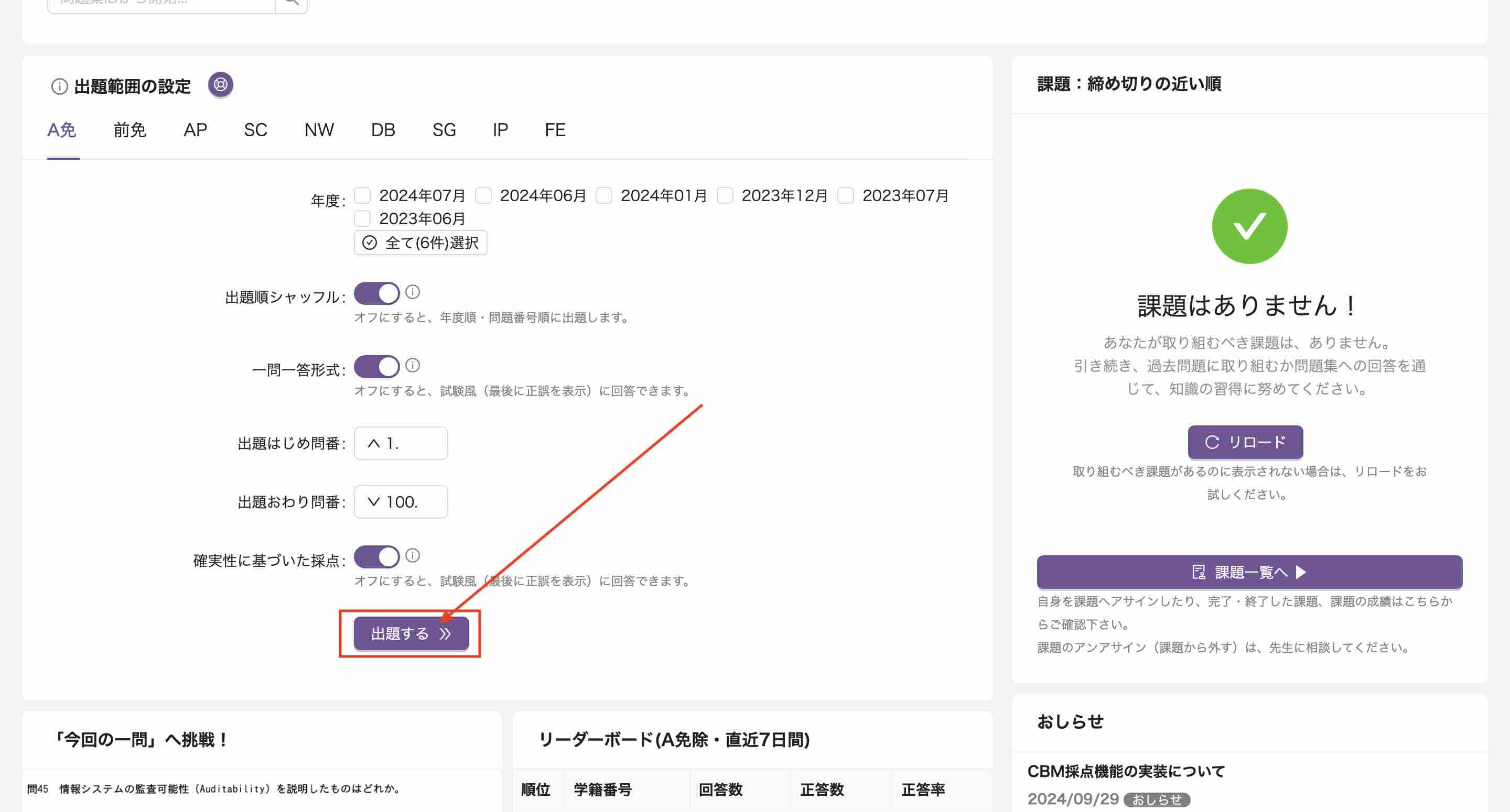 出題設定を編集したら、画面の[出題する]ボタンをクリックしてください。